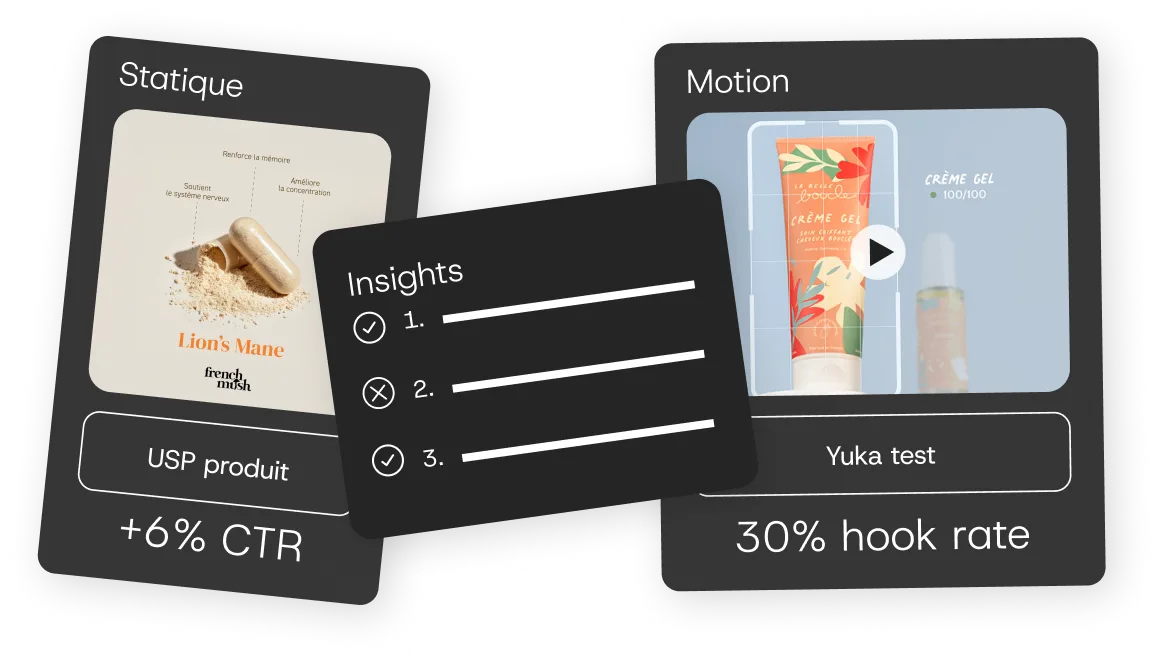 Un moteur créatif pensé pour faire baisser le CPA, révéler les top performers et soutenir votre croissance e-commerce.
